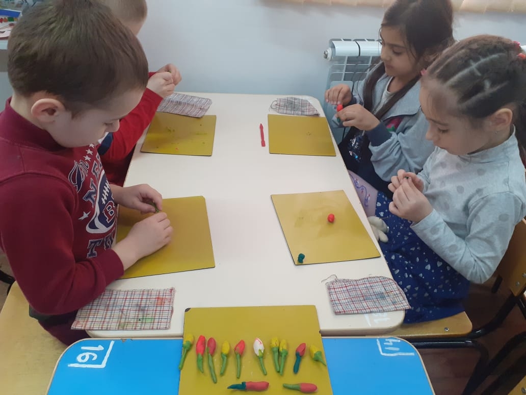 Художественно-эстетическое развитие в ст.гр.(лепка) на тему :"Тюльпаны".