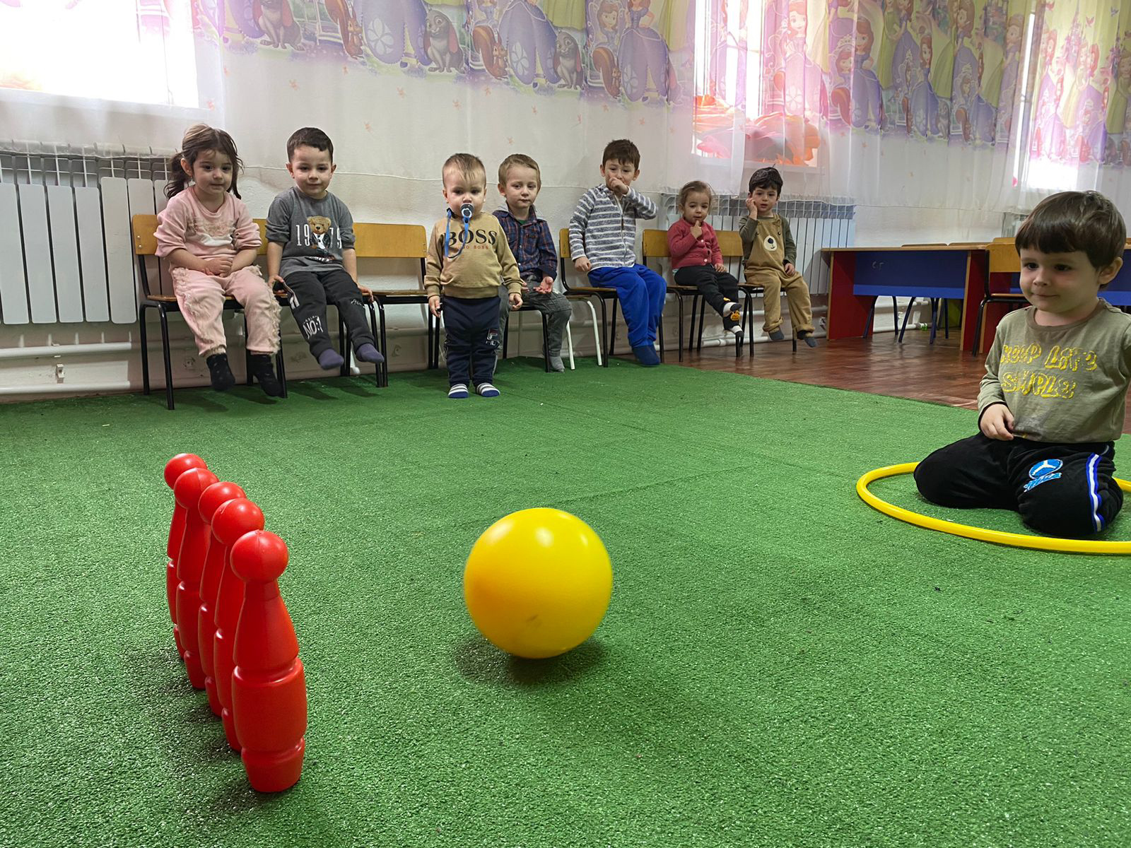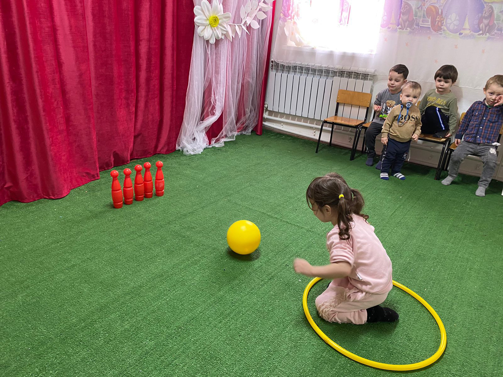 Физическое развитие.Младшая группаПодвижная игра «детский боулинг»Цель: способствовать развитиюкоординации движений»