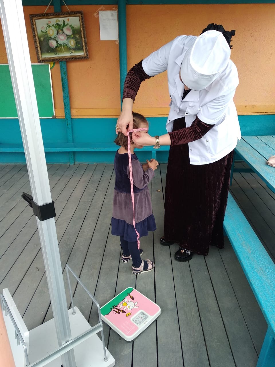Медицинская сестра Успаева Х.А. провела осмотр детей,измерение роста и веса .
