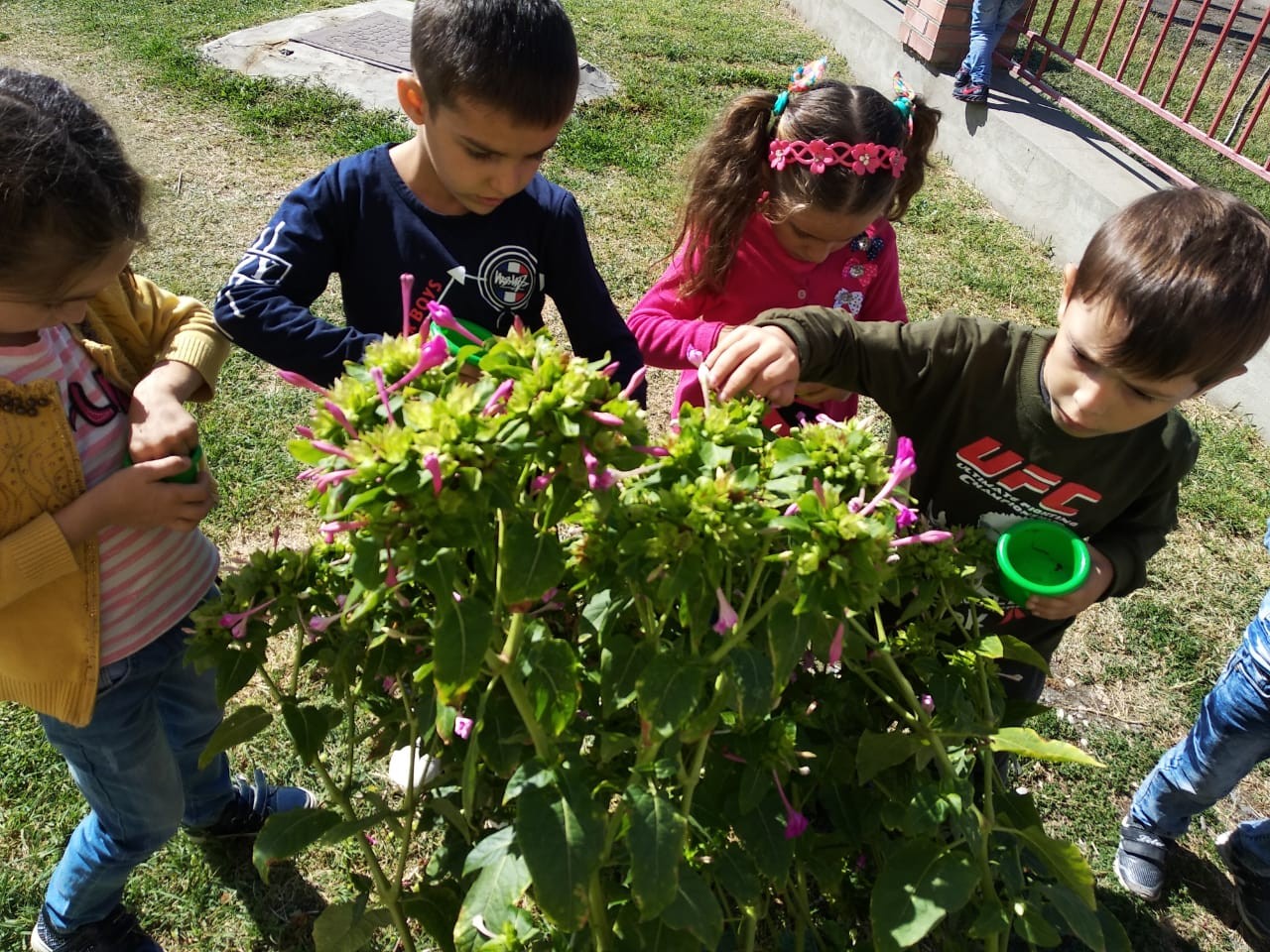 Дети на прогулке собирают семена цветов- трудовая деятельность
